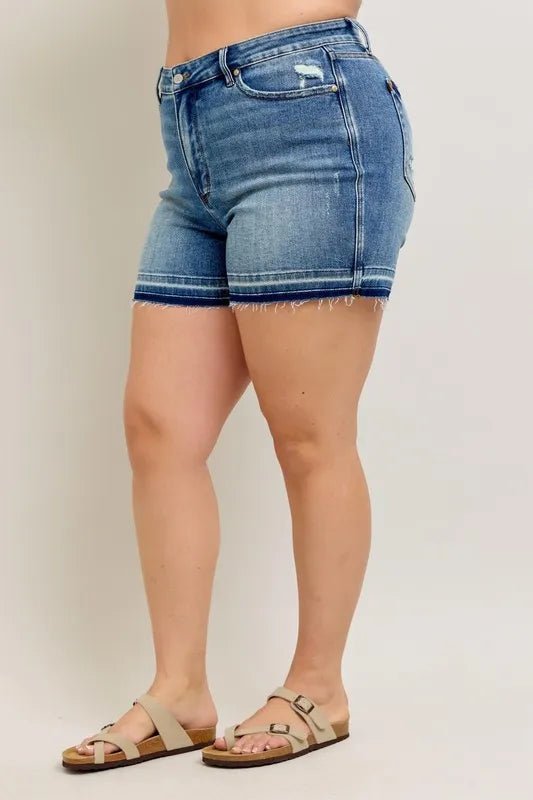 These High Rise Raw Hem Denim Shorts in Medium Wash offer a comfy cotton blend with just the right amount of stretch to move with you. Designed with tummy control for a flattering fit, they’re perfect for showing off your curves. Plus sizes available to keep everyone feeling fabulous and fun all summer long!