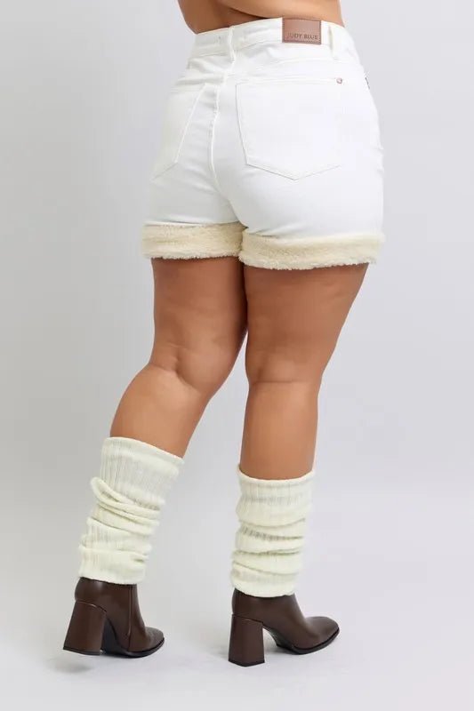Stay cool and comfy in these Ivory Fleece-Cuffed Denim Shorts! Made from a soft cotton blend with just the right amount of stretch, they move with you all day long. The cozy fleece cuffs add a fun twist, while plus sizes ensure a perfect fit for everyone. Perfect for sunny days and playful adventures!
