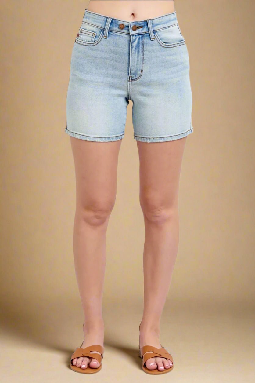 Upgrade your summer wardrobe with our Light Wash Double Button Denim Shorts! Made with a comfortable cotton blend and a touch of stretch, our shorts offer a versatile fit for all body types. Available in plus sizes. Who said denim can't be fun?