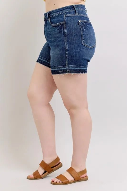 Plus Size High Rise Raw Hem Denim Shorts – Faded Indigo Wash