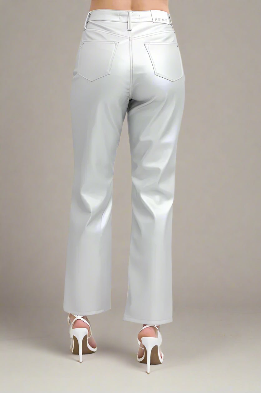 Step out in style with our Vegan Leather Straight Leg Pants in Silver Mist, now available in plus sizes! These sleek, silver-toned pants offer a flattering straight-leg fit that moves with you. Perfect for adding a touch of edgy glam to any outfit while keeping comfort front and center. Embrace your bold side and shine bright wherever you go!