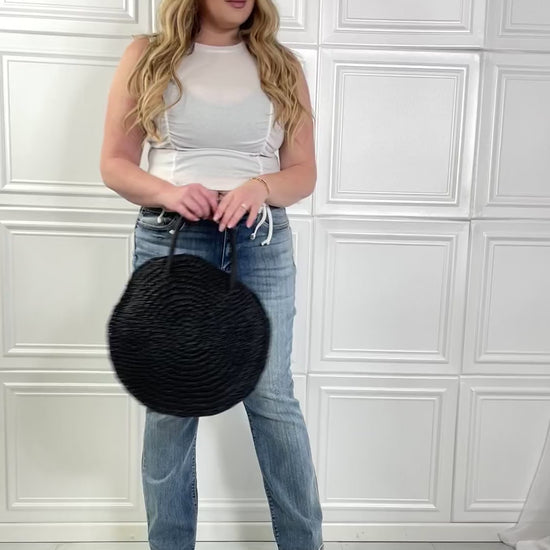 Sac à main en rotin et paille noir
