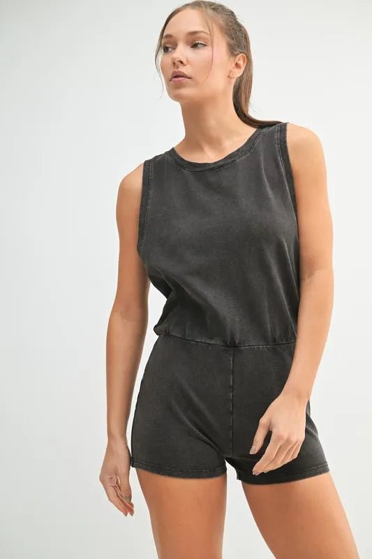 Washed Black Sleeveless Muscle Romper