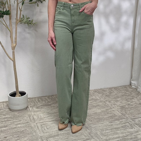 Jean large à ourlet brut en sauge