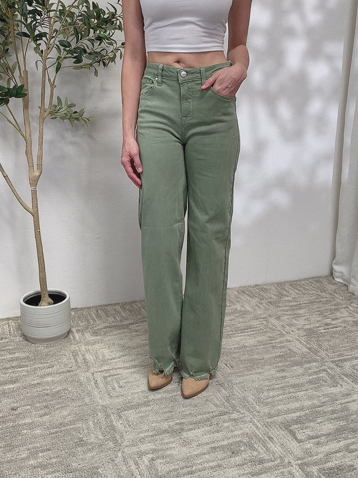 Rehaussez votre look denim avec notre jean jambe large à ourlet brut en sauge ! Fabriqué à partir d'un mélange de coton douillet, ce jean offre une coupe confortable et un design unique à ourlet brut. Avec des tailles plus disponibles, tout le monde peut arborer ce look tendance. Parfait pour un style sans effort !
