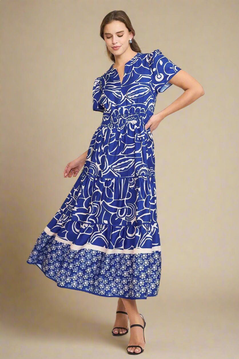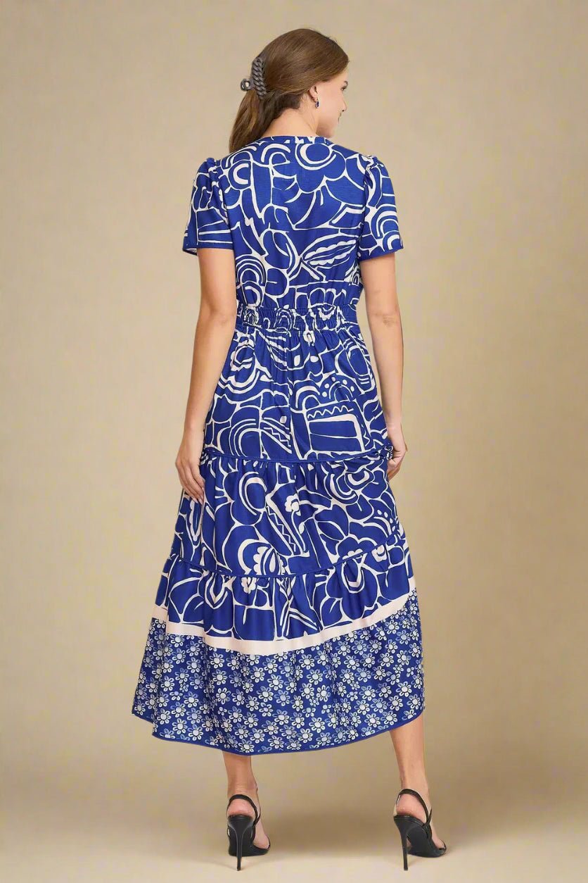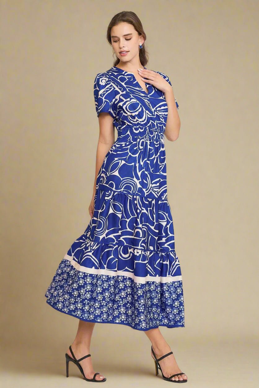 Cobalt Blue Floral Tiered Midi Dress