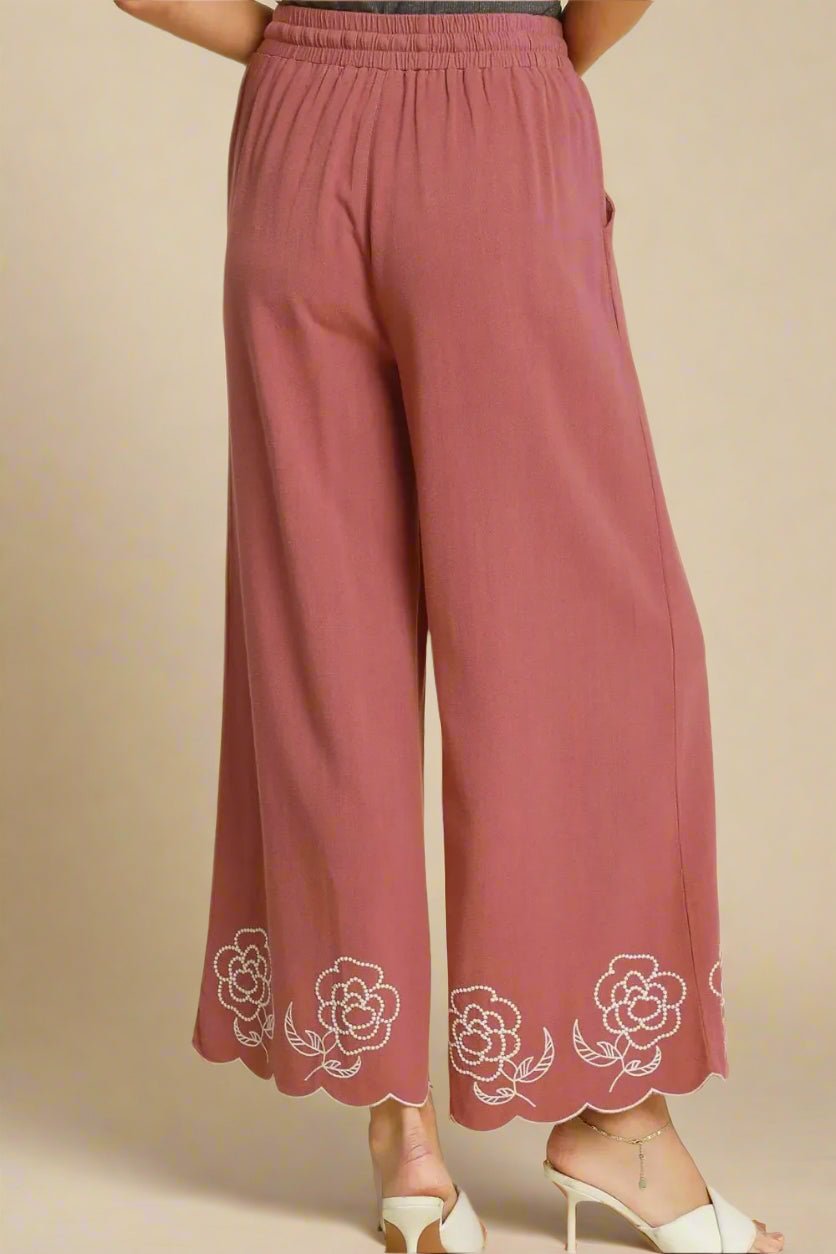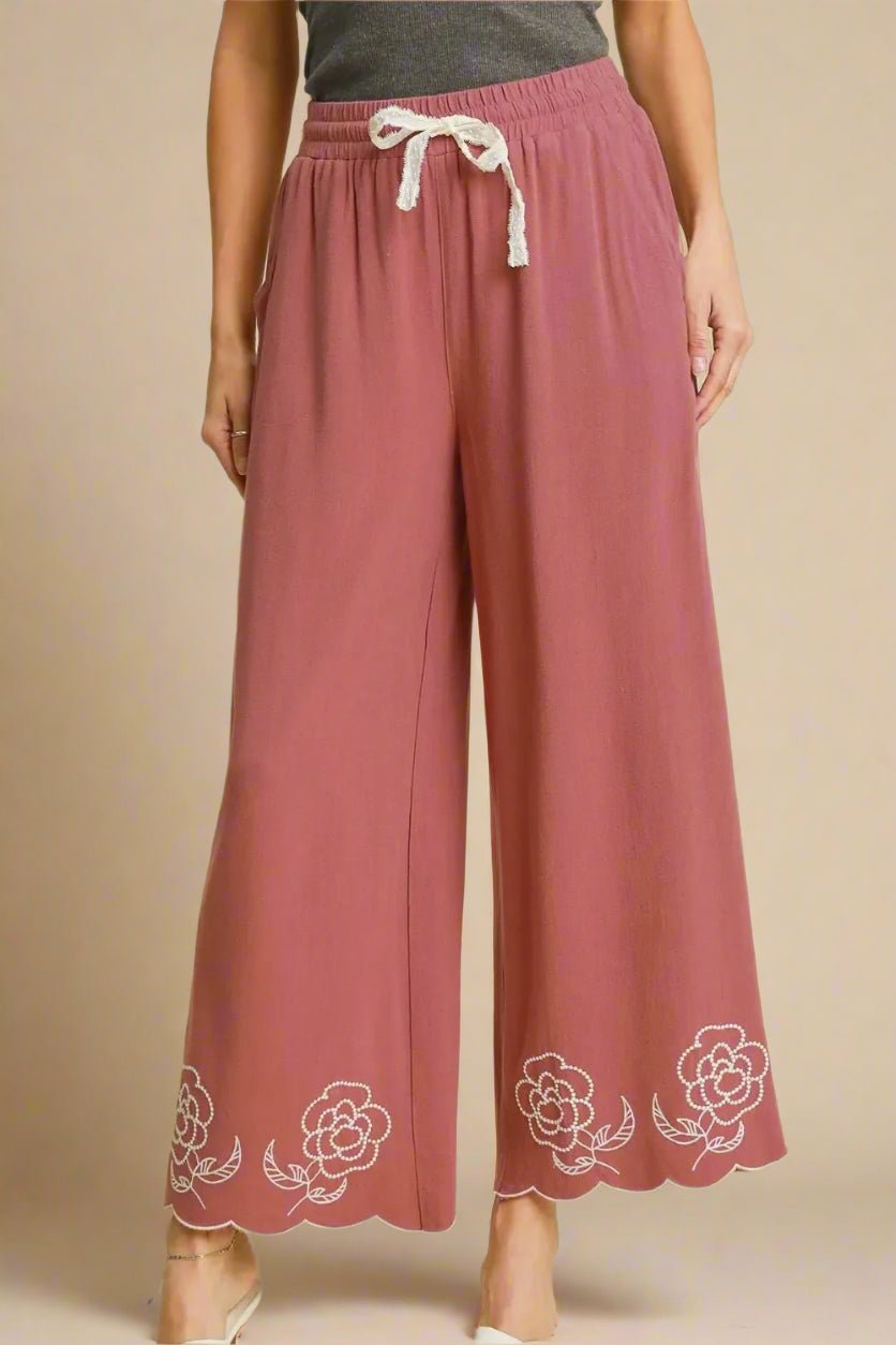 Add a pop of personality to your wardrobe with these charming Rose Wide Leg Pants. Made from a luxurious linen/cotton blend, these pants feature a drawstring waist for added comfort and style. With plus sizes available, these pants are perfect for anyone wanting to feel both fashionable and confident.