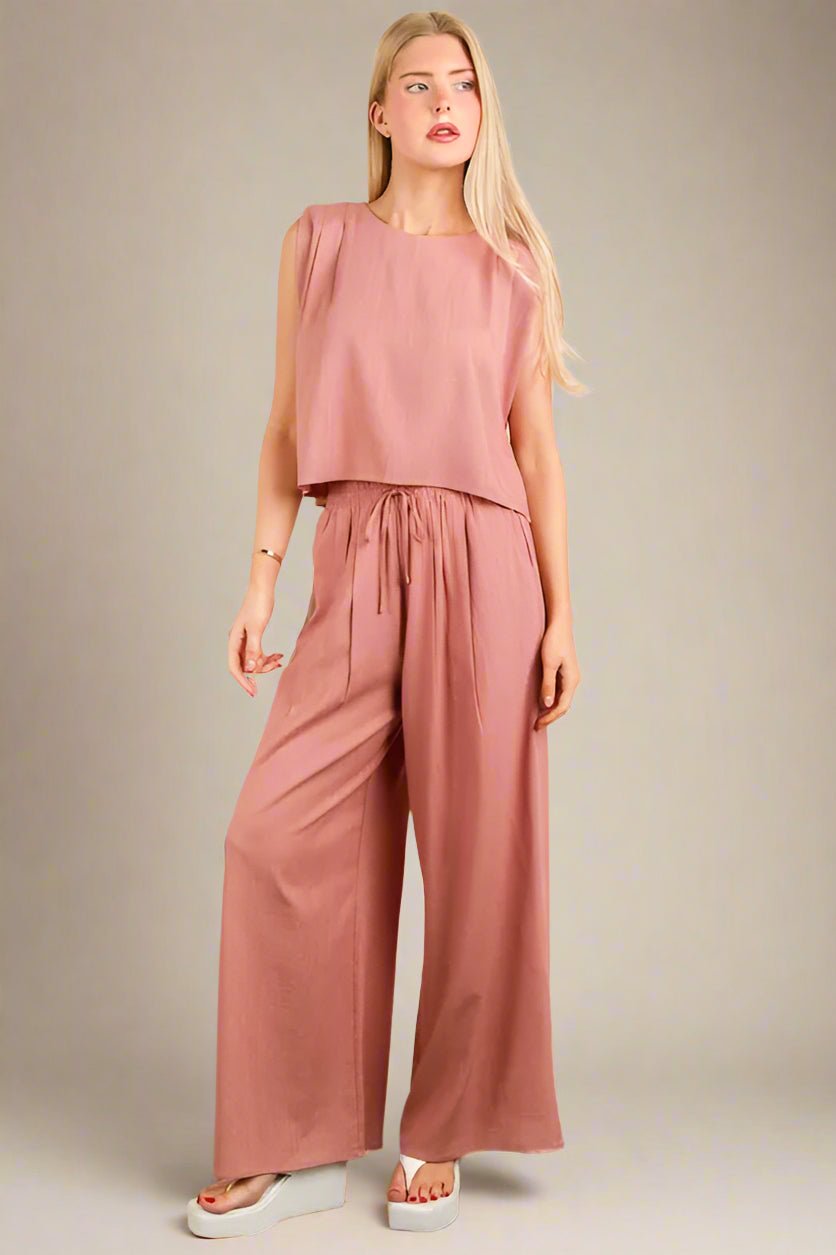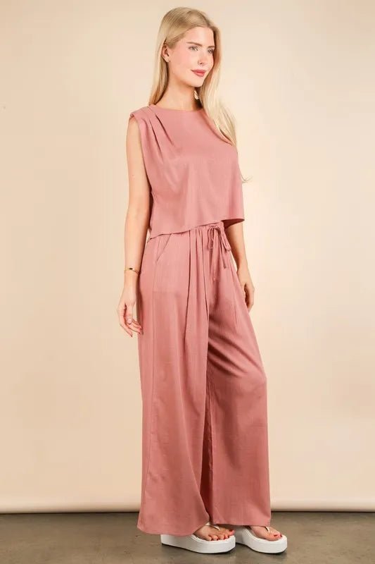 Textured Crop Top & Wide Leg Pant Set – Dusty Rose