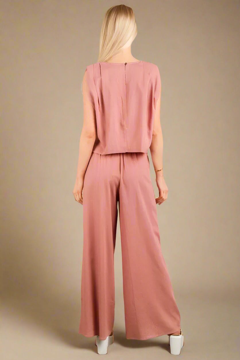 This Dusty Rose set features a sleeveless textured crop top paired with wide-leg pants for a breezy, stylish look. The drawstring waist lets you customize your fit, while handy pockets add a fun, practical touch. Perfect for playful days and relaxed vibes!