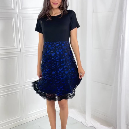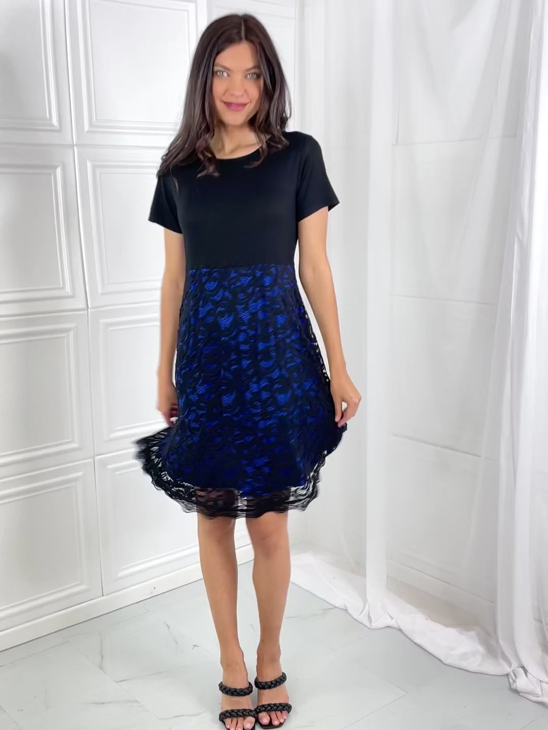 Préparez-vous à faire tourner les têtes avec cette robe mi-longue en dentelle contrastante ! Avec des manches courtes, une conception doublée flatteuse et un mélange de rayonne pour plus de confort, cette robe est parfaite pour toutes les occasions. Et avec des tailles inclusives, tout le monde peut arborer ce look élégant. Habillez-vous pour impressionner et soyez à l'aise aussi !