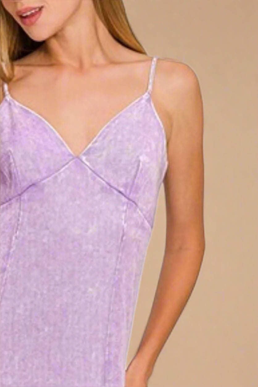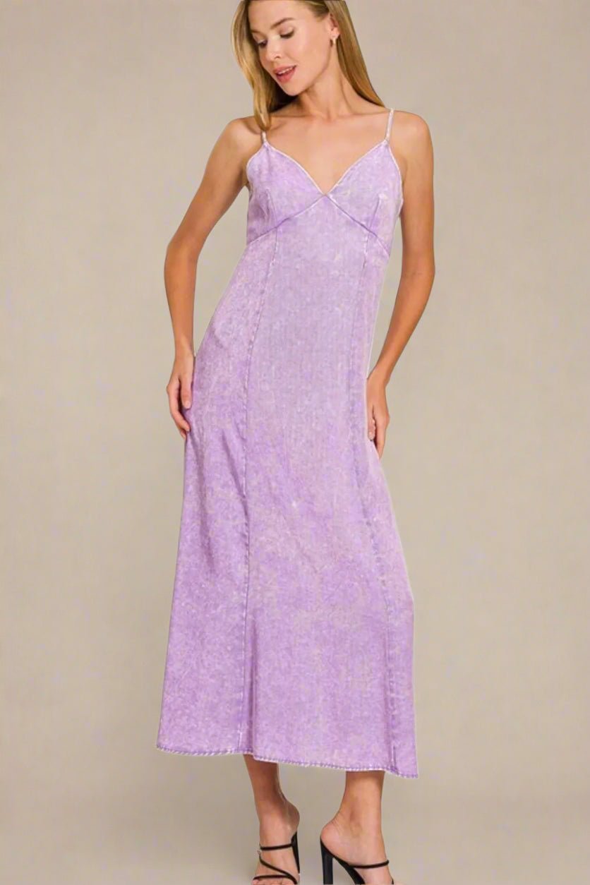 Acid Wash Denim Maxi Dress – Washed Lilac