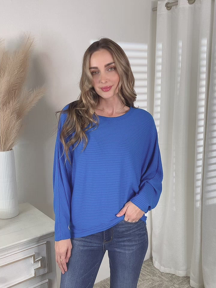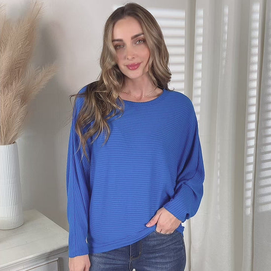 Découvrez notre chemisier bleu à manches chauve-souris - le mélange parfait de confort et de style ! Ce haut est doté d'un tissu extensible et de manches longues pour une coupe flatteuse. De plus, il est disponible dans une gamme de tailles pour s'adapter à tous les types de corps. Améliorez votre garde-robe avec ce chemisier polyvalent !
