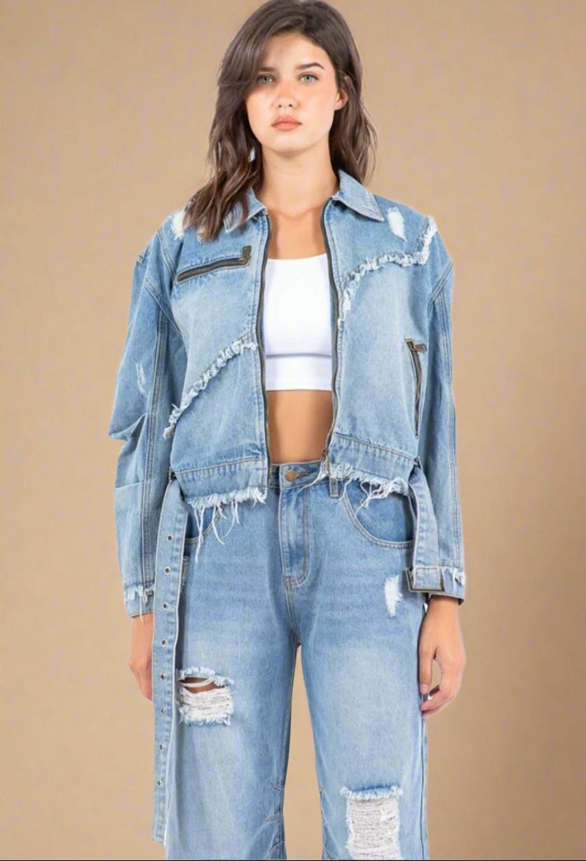 Light Wash Distressed Denim Jacket