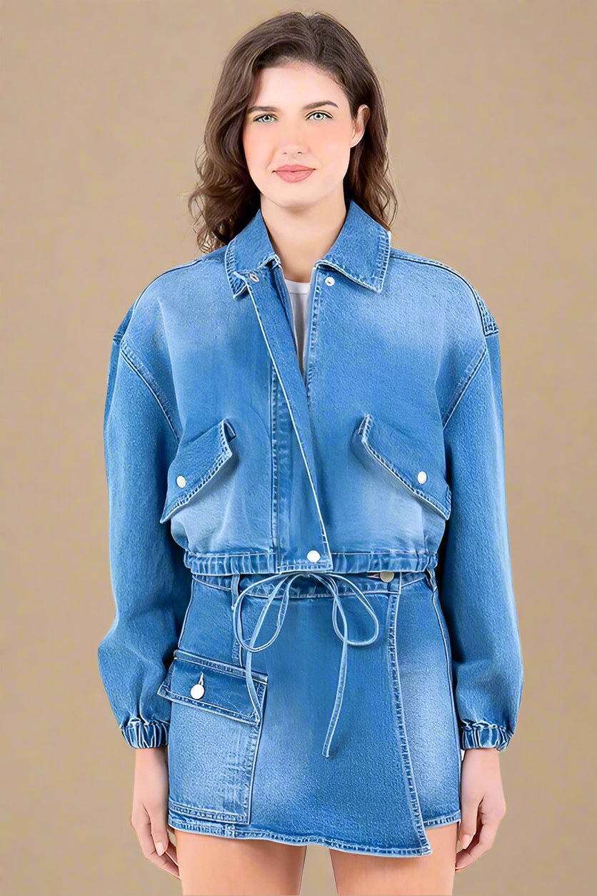 Get ready to rock this denim jacket with a twist! Made with soft and durable cotton, this jacket features a relaxed fit for ultimate comfort. But it's the drawstring hem that really sets it apart, giving you the option to cinch and style it to your liking. And yes, it's available in plus sizes too!