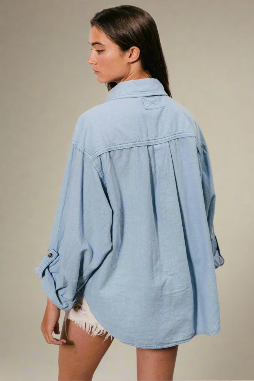 Get ready to rock the denim game with our Button Down Stitch Detail Denim Shirt! Made of 100% cotton, this shirt features long sleeves with roll tabs for a versatile style. Perfect for a casual day out or a night on the town, this shirt will have you looking cool and feeling comfortable.