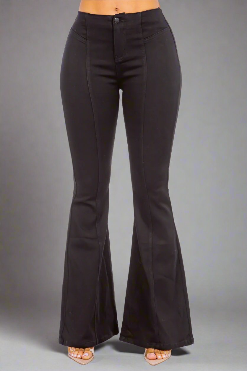 Introducing the perfect blend of comfort and style - our Black High Waist Pull On Flare Jeans. Made with a cotton/modal blend, these jeans provide all-day comfort while flattering your figure with a high waist and flare silhouette. Upgrade your denim game with these must-have jeans!