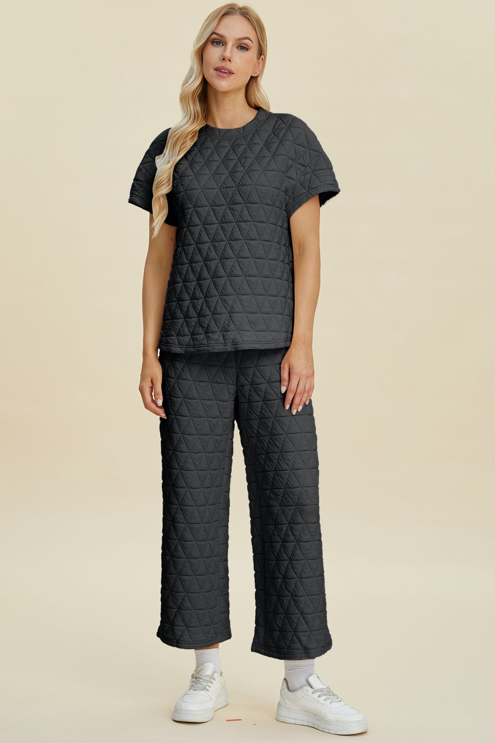 Get ready to slay the day in this Black Short Sleeve Top and Pants Set. Made with textured fabric and a light stretch, this set offers comfort and style in plus sizes. Upgrade your wardrobe with this must-have duo!