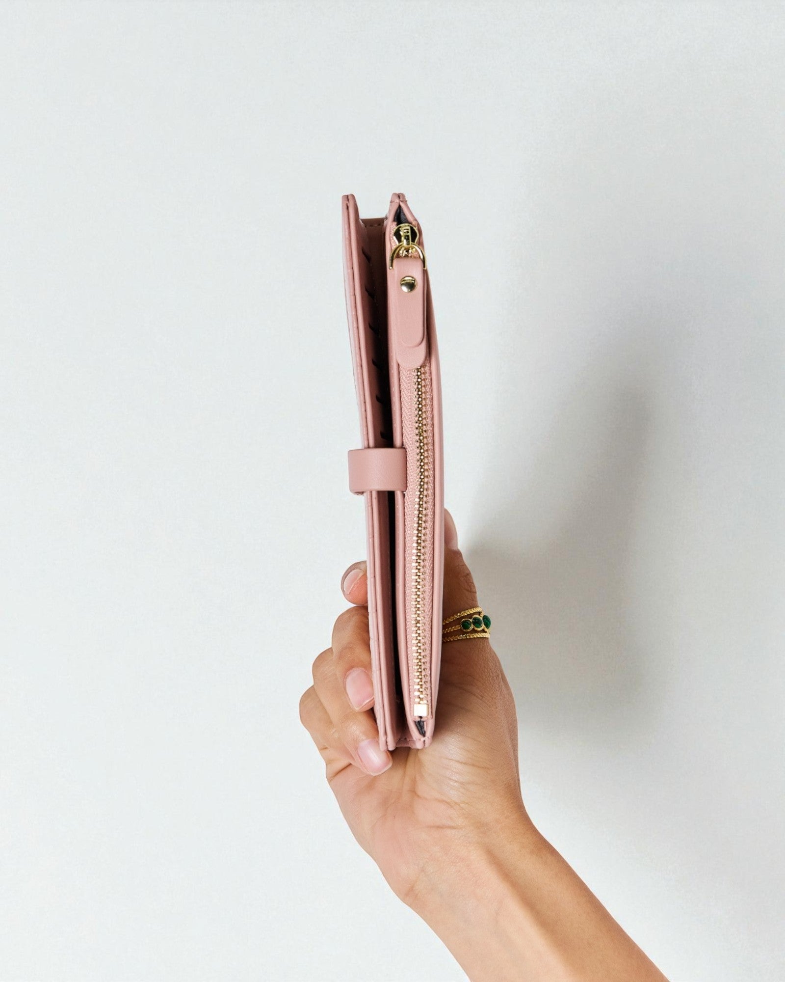 With multiple card slots and a roomy interior, it's got the space for your essentials without the bulk. Available in a range of colors to match your mood, from bold jewel tones to classic neutrals. Carry it as a clutch or toss it in your bag—either way, you're making a statement.