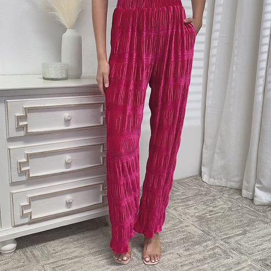 Fuchsia Velvet Wide-Leg Palazzo Pants
