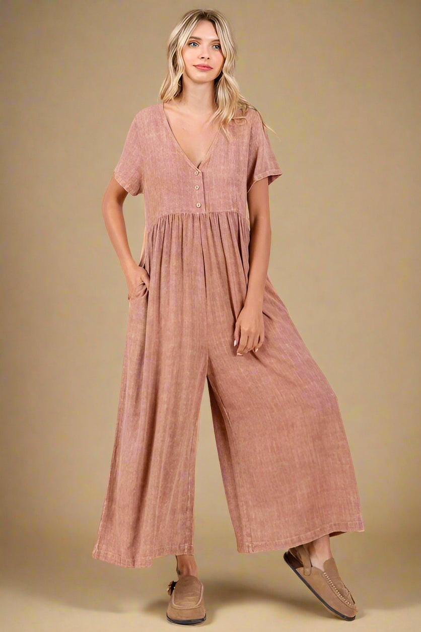 Short Sleeve Wide Leg Jumpsuit in Ginger