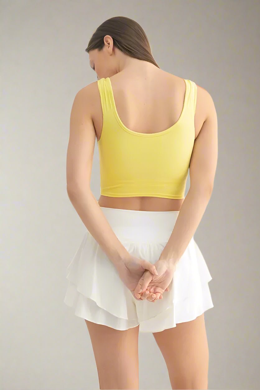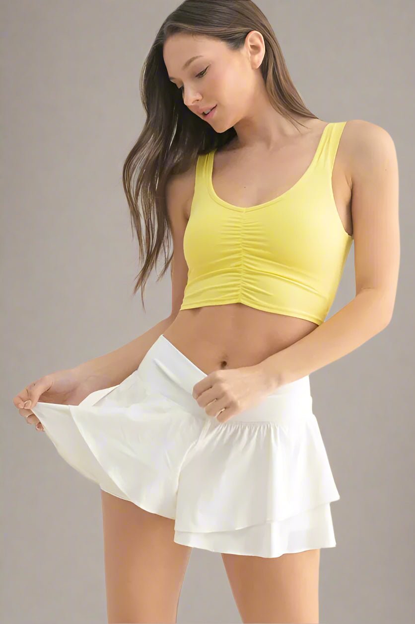 Brighten your workout with the Ruched Front Sports Bra in sunny yellow! Designed to combine comfort and style, its ruched detail adds a fun twist while providing gentle support. Perfect for yoga, jogging, or just lounging, this bra keeps you feeling confident and energized all day long.