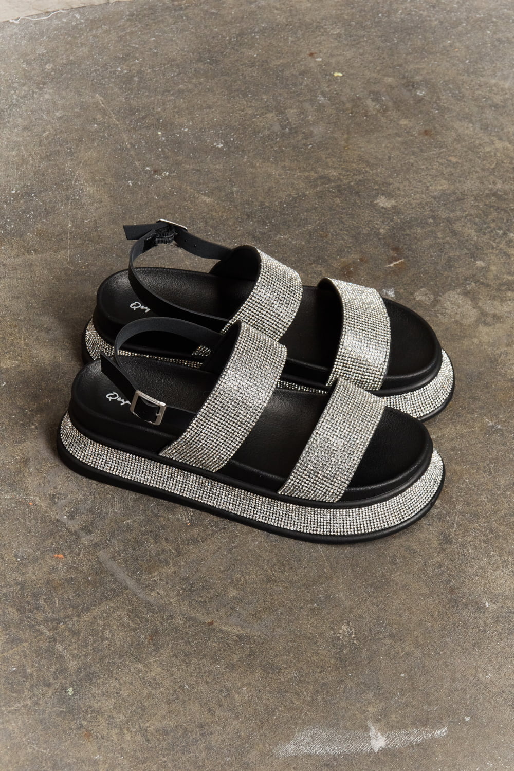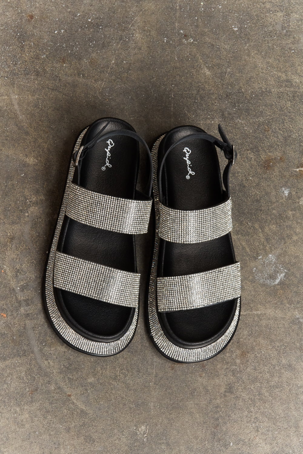 Shimmer and shine in our Platform Rhinestone Slingback Sandals! These flats feature an open toe for ultimate comfort and style. Step out in style and add a touch of glam to any outfit with these beauties.