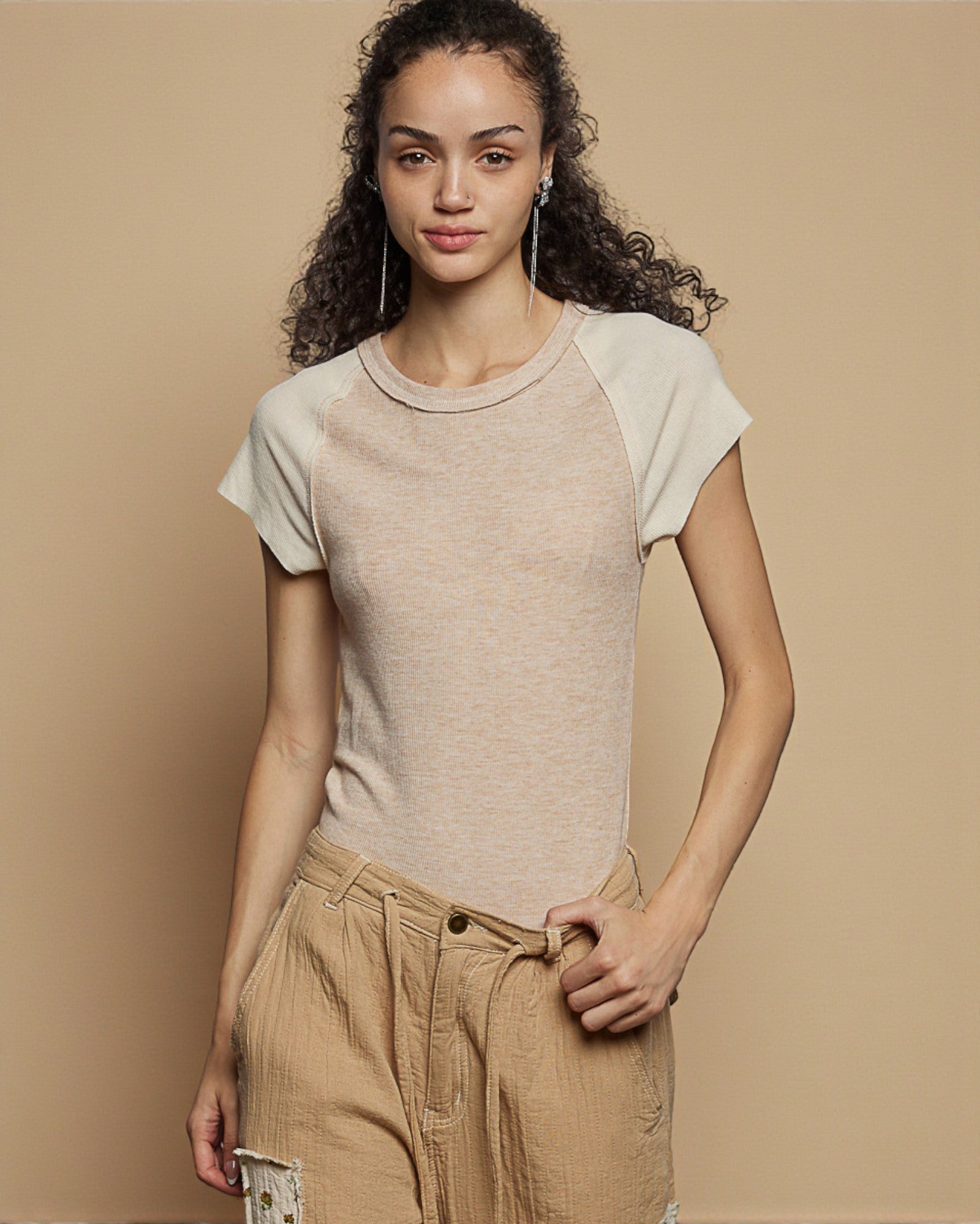 Effortless comfort meets casual style with this soft raglan tee. The classic oatmeal and ivory colorway pairs perfectly with everything in your wardrobe, while short sleeves keep things breezy and relaxed.