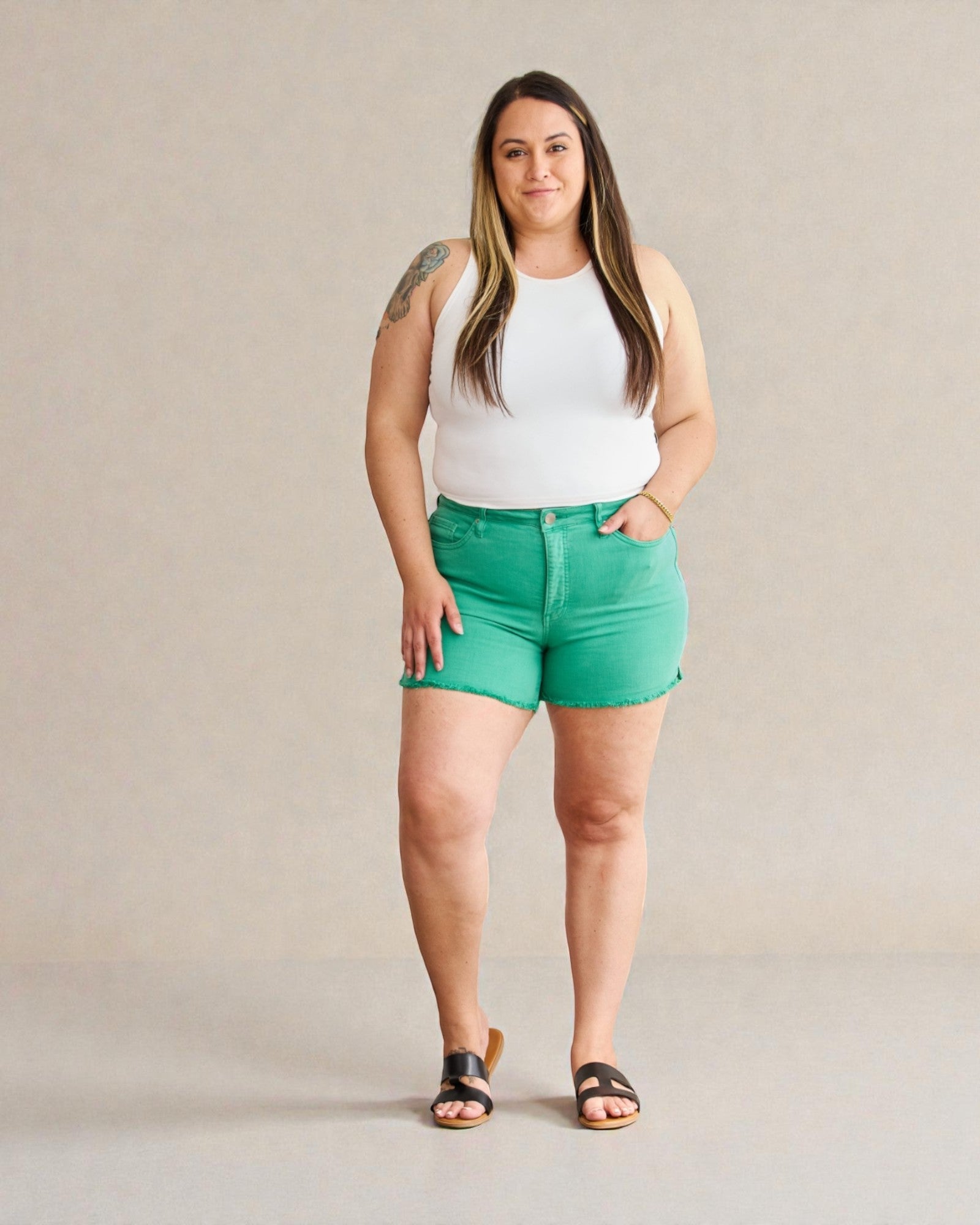 Dive into summer style with our Aqua High Rise Denim Shorts—the perfect blend of comfort and confidence. Crafted from a soft cotton blend with just the right amount of stretch, these shorts move with you all day long. The high rise cut features built-in tummy control for a flattering fit, while the trendy frayed hem adds that effortless, laid-back vibe. Available in plus sizes, there's a perfect pair waiting for everyone.