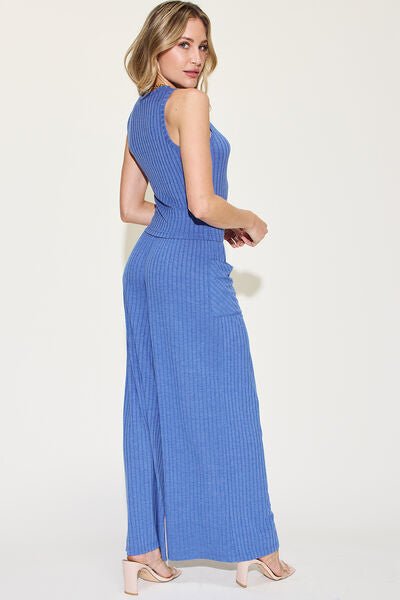 Mix and match your way to effortless style with this ribbed tank and wide-leg pants duo. The fitted tank pairs perfectly with relaxed, flowing pants for a look that's comfy yet put-together. Available in multiple colors so you can create your perfect combo—whether you're going monochromatic or bold contrast. Plus sizes included, because great style comes in every size. Throw it on for brunch, errands, or lazy Sundays.