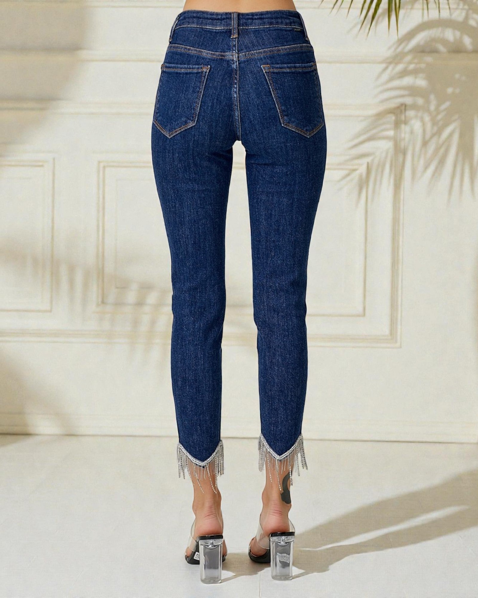 Dark Wash Ankle Rhinestone Fringe Jeans