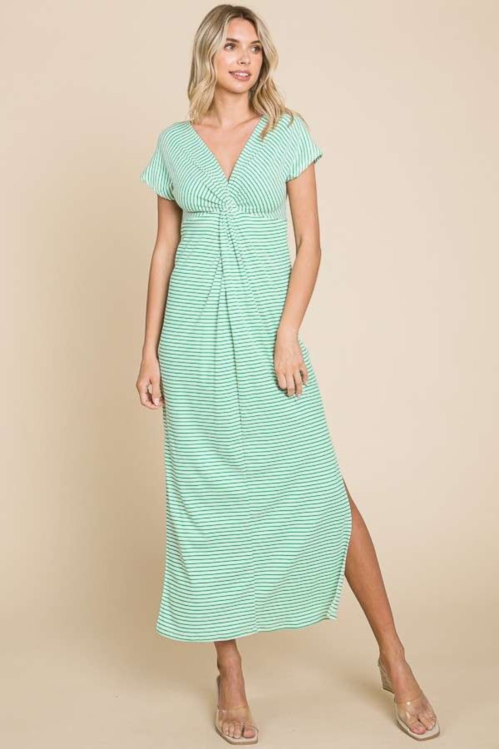Effortlessly chic meets comfort in this striped maxi dress! The soft rayon blend drapes beautifully while the twist-front detail adds a fun, flattering touch. Short sleeves keep things breezy, and the classic white and black stripes work with everything in your closet. Available in plus sizes so everyone can rock this versatile style.