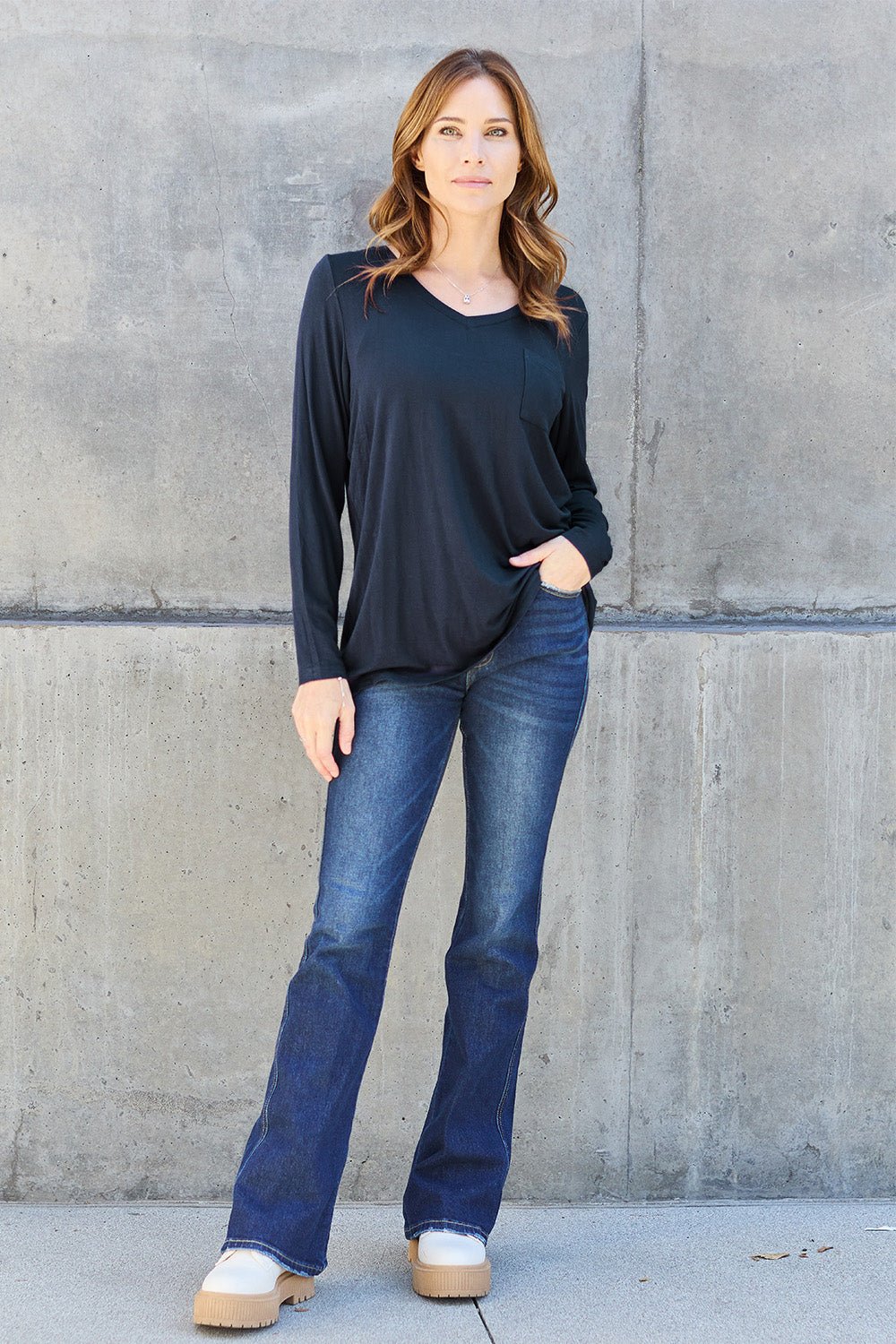 Stay chic and comfy with our V-Neck Long Sleeve Top! Its tunic length flatters all sizes and comes in a variety of colors. Plus sizes also available. Perfect for any occasion!