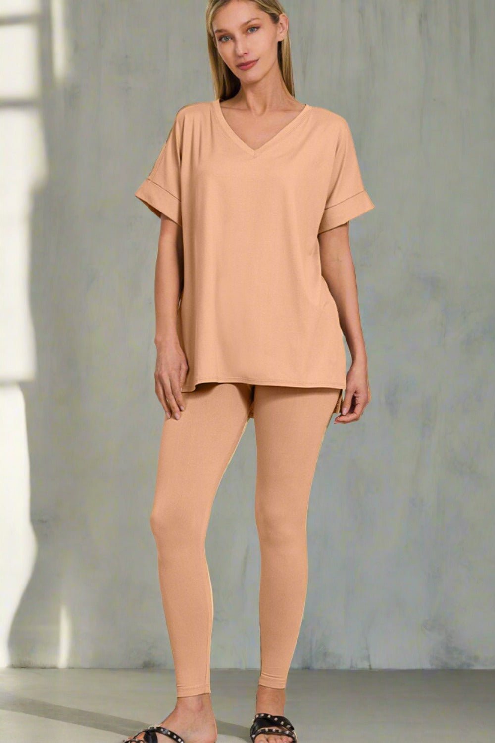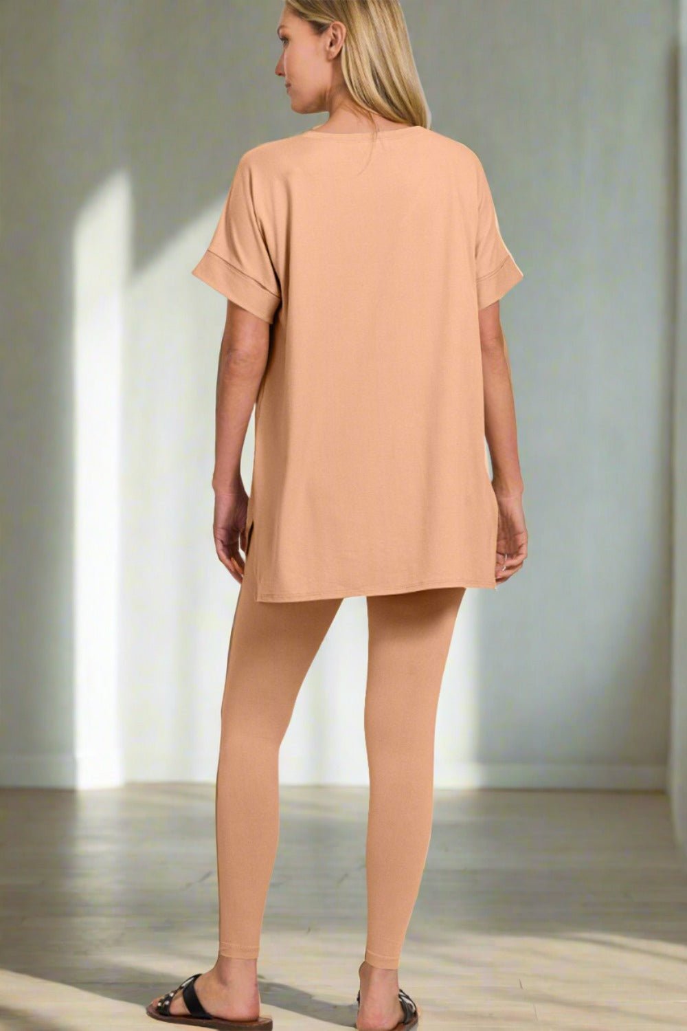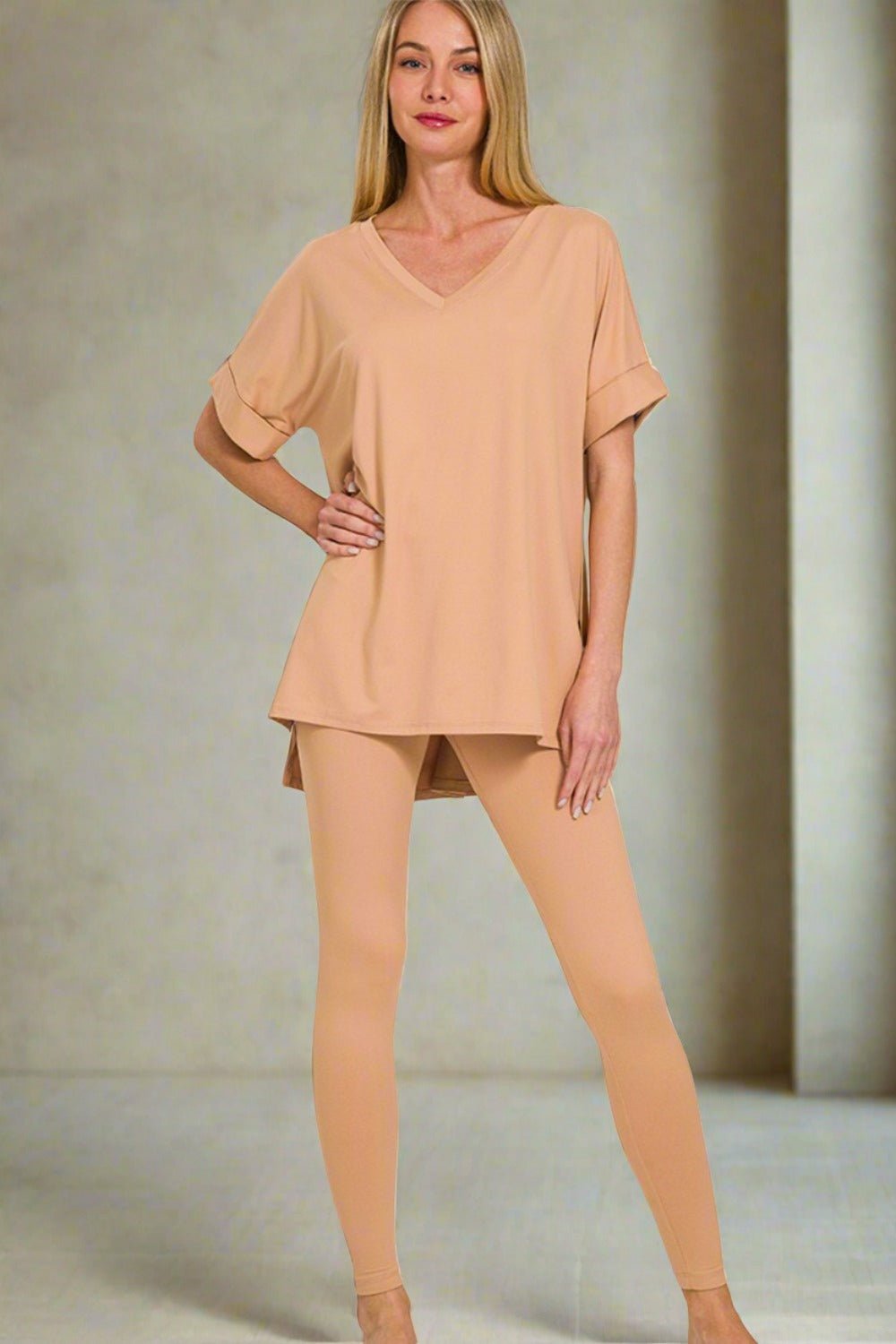 Warm Nude V-Neck Tunic & Leggings Set